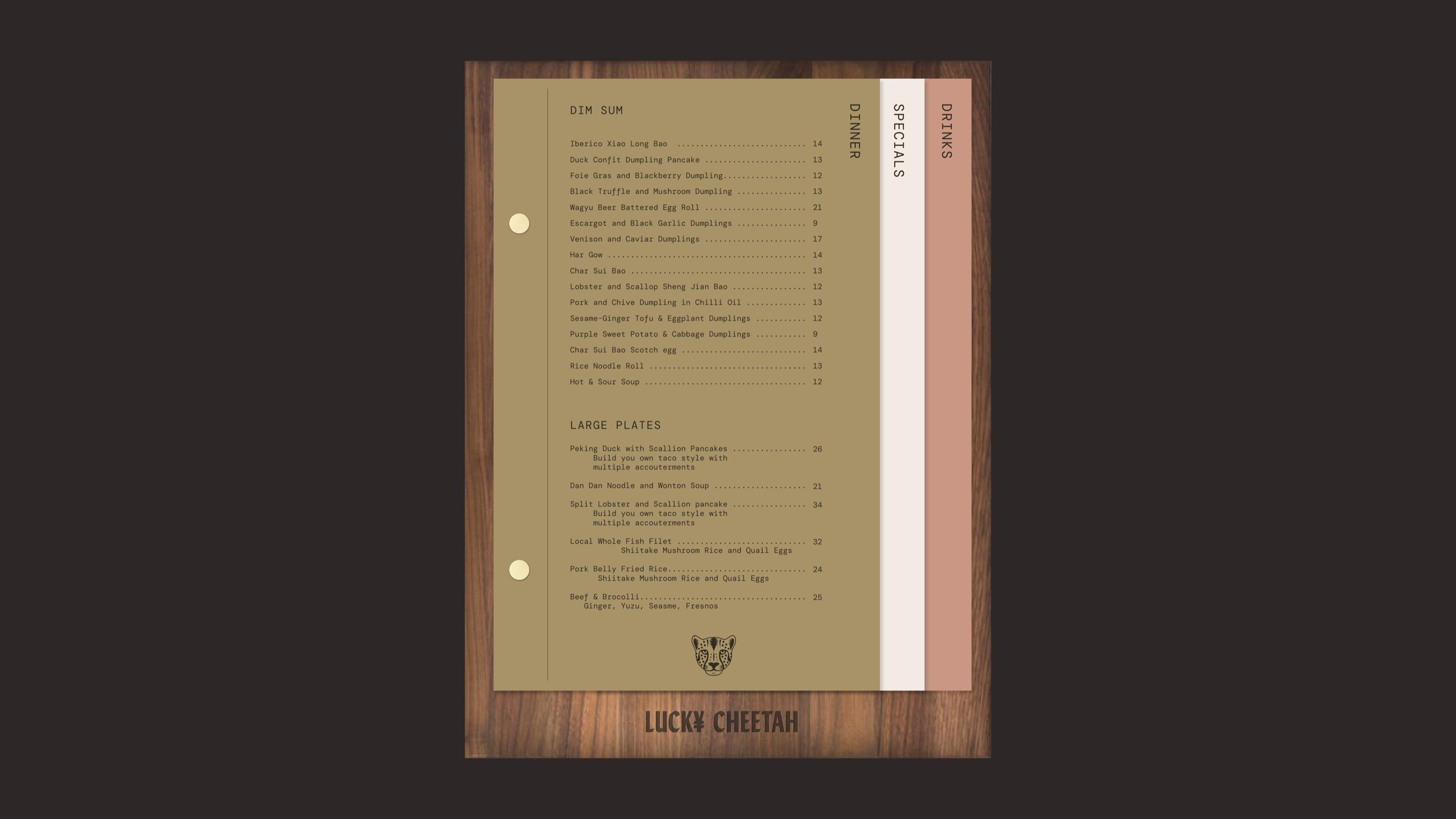 With Lucky Cheetah, we undertook the challenge of creating a brand that rang true to the rich traditions of Cantonese cuisine and cast it in a modern context. Our brand identity system conveys a lounge atmosphere paired with innovative fine dining. We drew from mid-century finishings, calligraphic inspired typography, and classic Chinese zodiacs to create a series of marks and illustrations used across plate ware, signage, menus, and interiors.