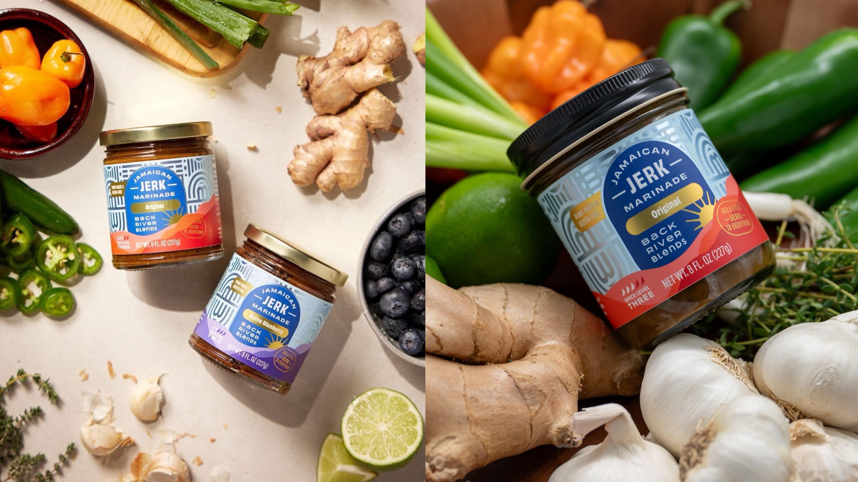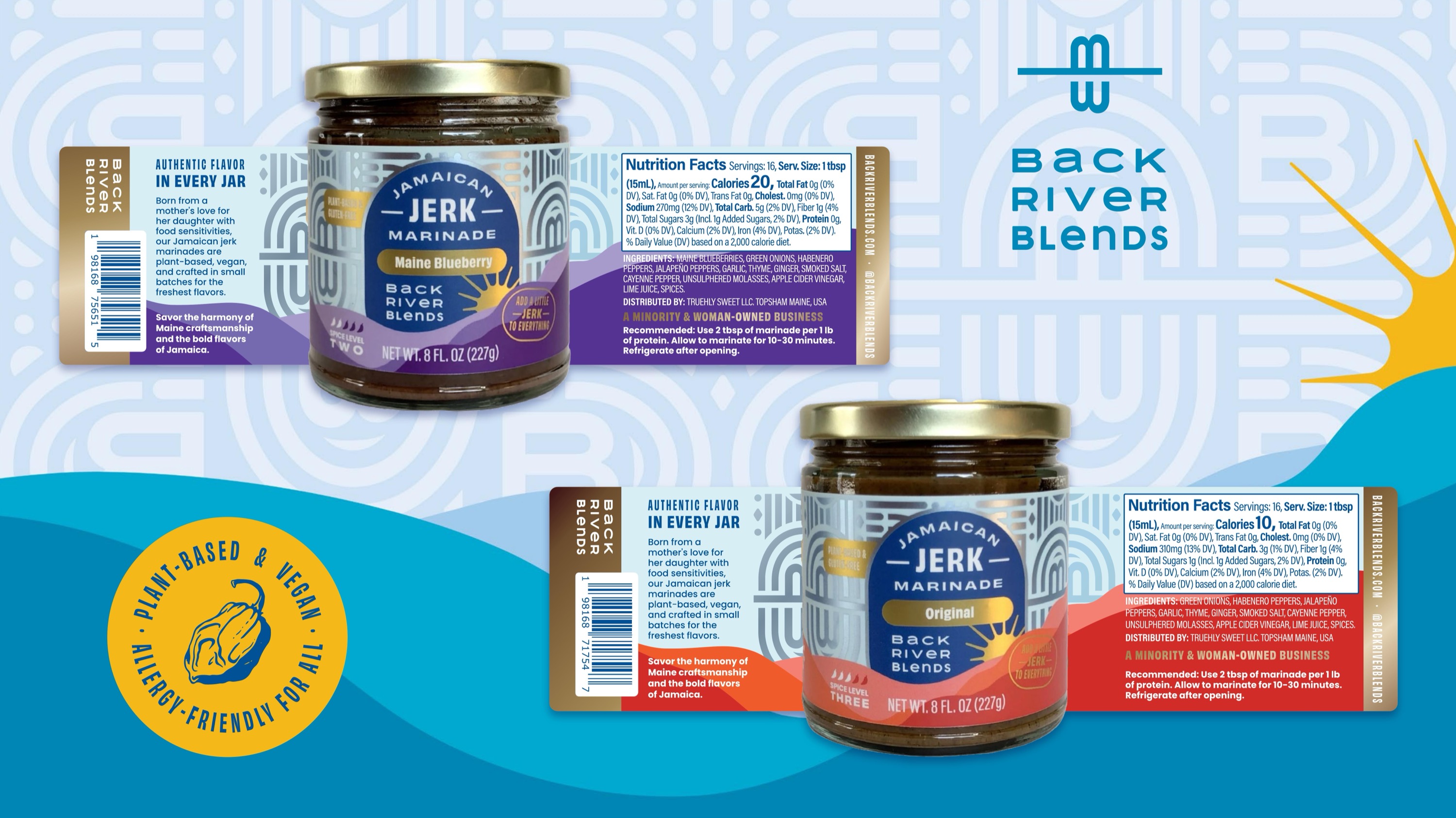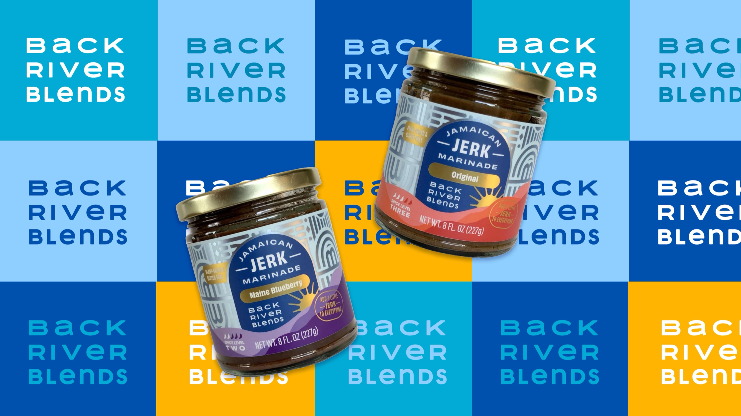 Backriver Blends brings the authentic, bold flavors of Jamaica to everyone, regardless of dietary restrictions. The branding, which was inspired by Founder Jordene's childhood growing up among the hills and rivers of Jamaica, came to life through the packaging for her two signature marinades. The B/B monogram icon is meant to evoke the image of a mountain along a river, with its reflection showing just below. The symmetry also alludes to the mirroring of Jordene's two homes in Jamaica and Maine. The brand pattern is prominently featured as a backdrop for the product line with a shimmering matte metallic. Jordene crafts her products with her family in mind, and as a busy Mom to a daughter with food sensitivities, she wanted packaging that would reflect the simple, but high-quality ingredients in her products. With thoughtful metallic touches and bold colors, the labels are eye-catching on store shelves.