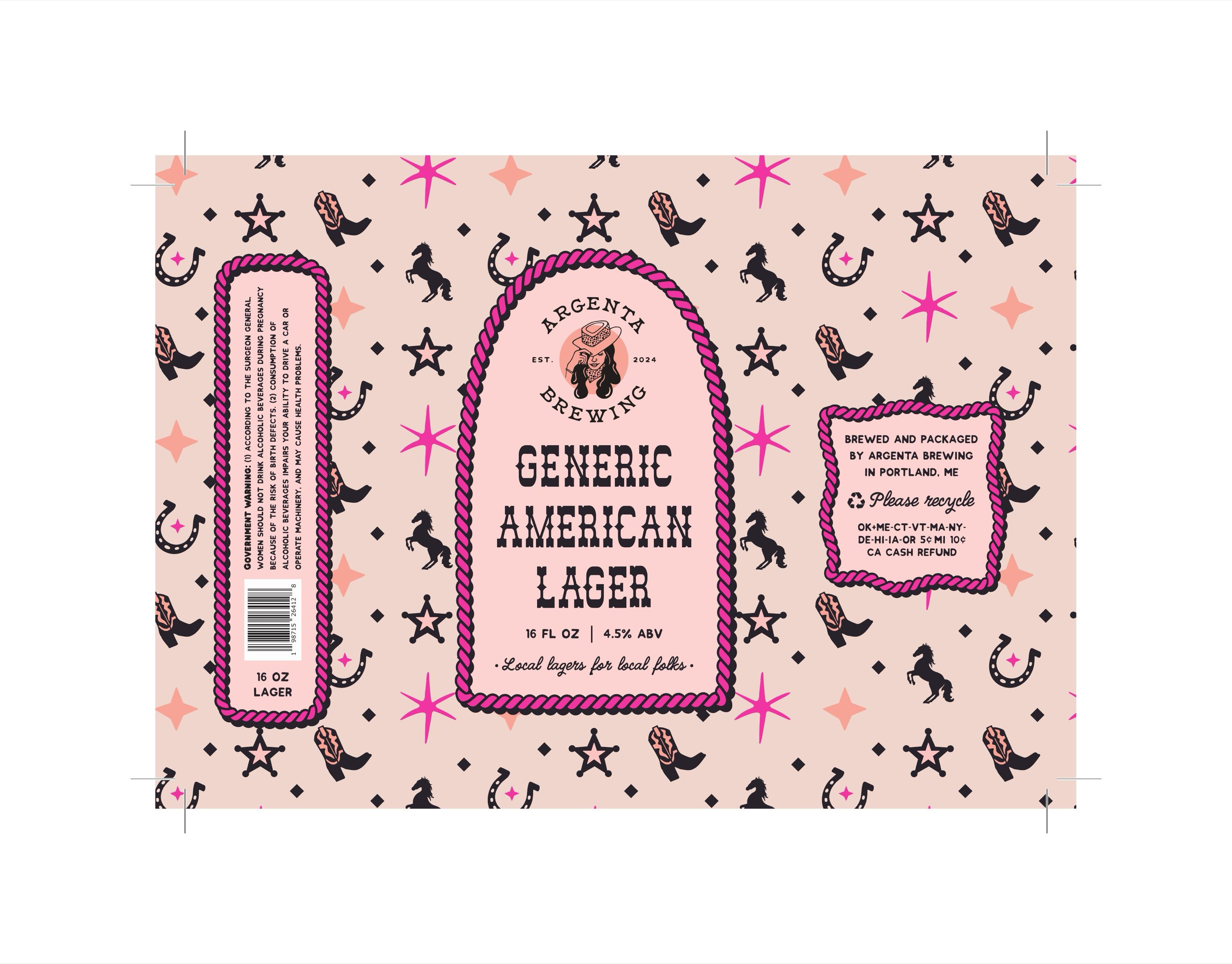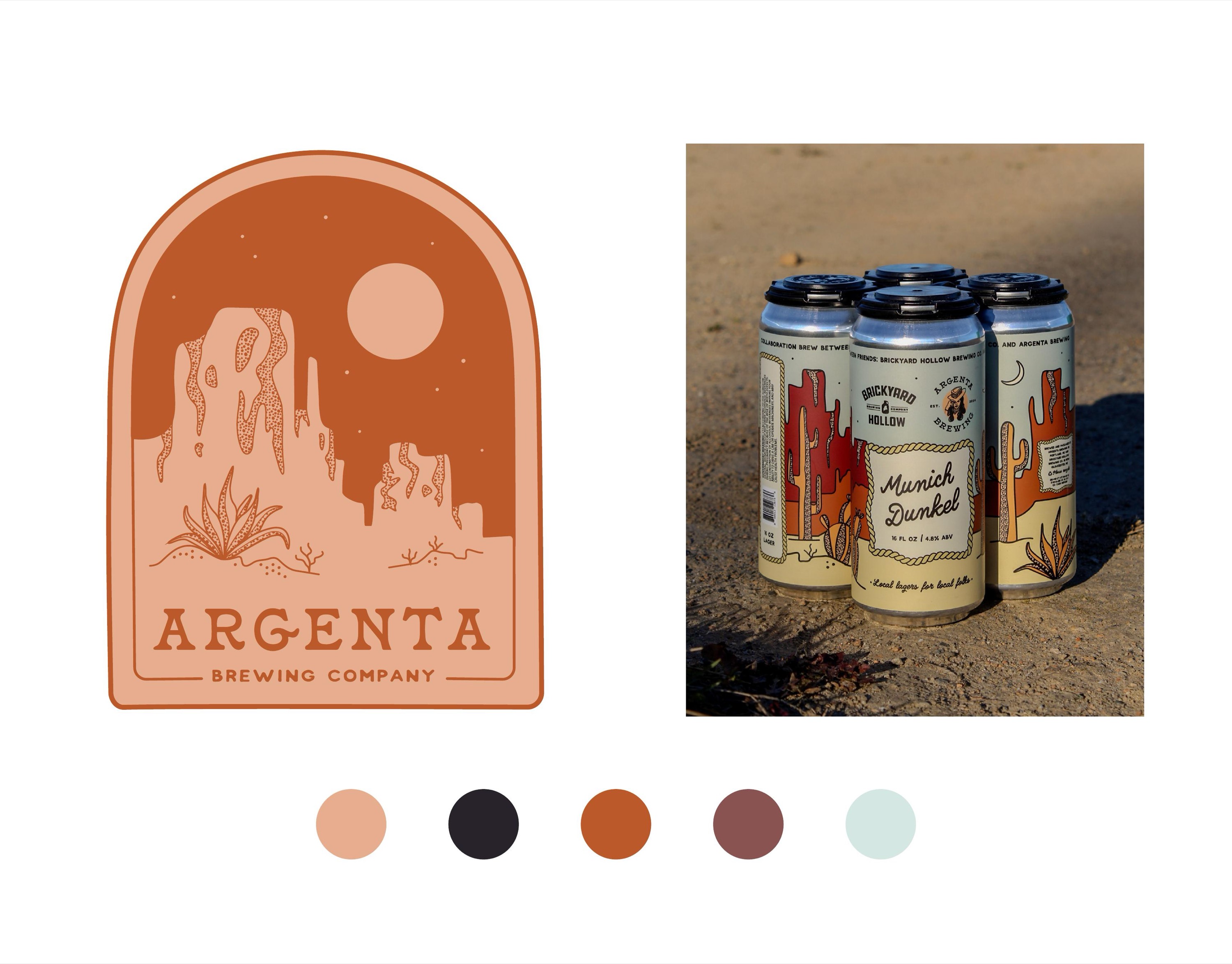 The inspiration behind Argenta comes from Owner Ryan's Southwestern roots. His "lager saloon" brings a unique, wild west atmosphere to Portland's Bayside neighborhood. I digitized my original illustrations to create a full branding suite with alternate logos to bring this vision to life. I also painted two murals in the brewery as well as designed can labels for Argenta based on this branding. Yeehaw!