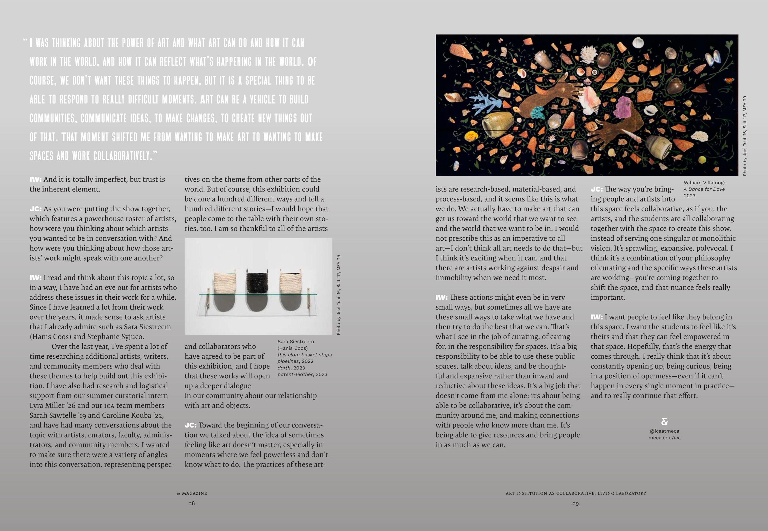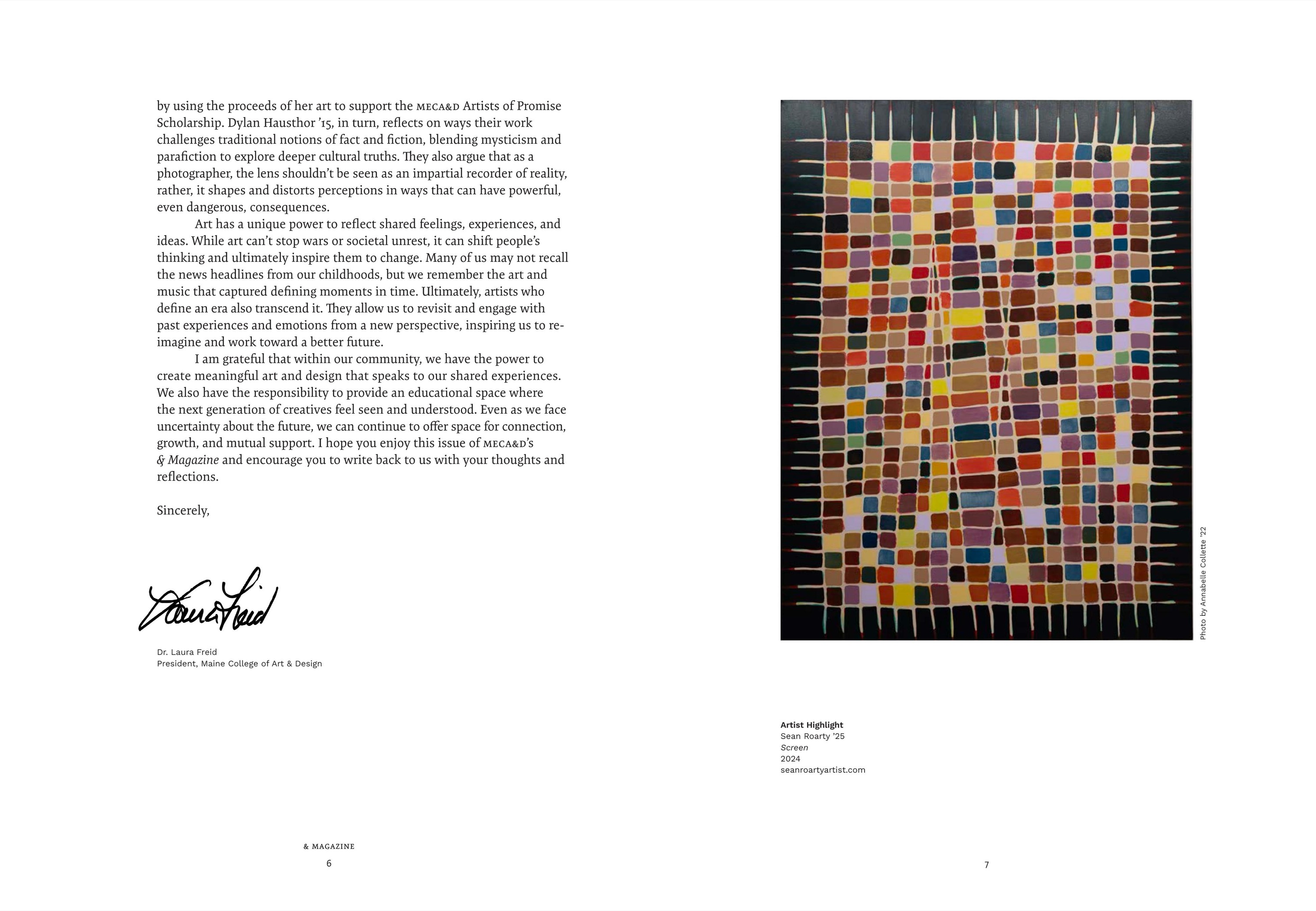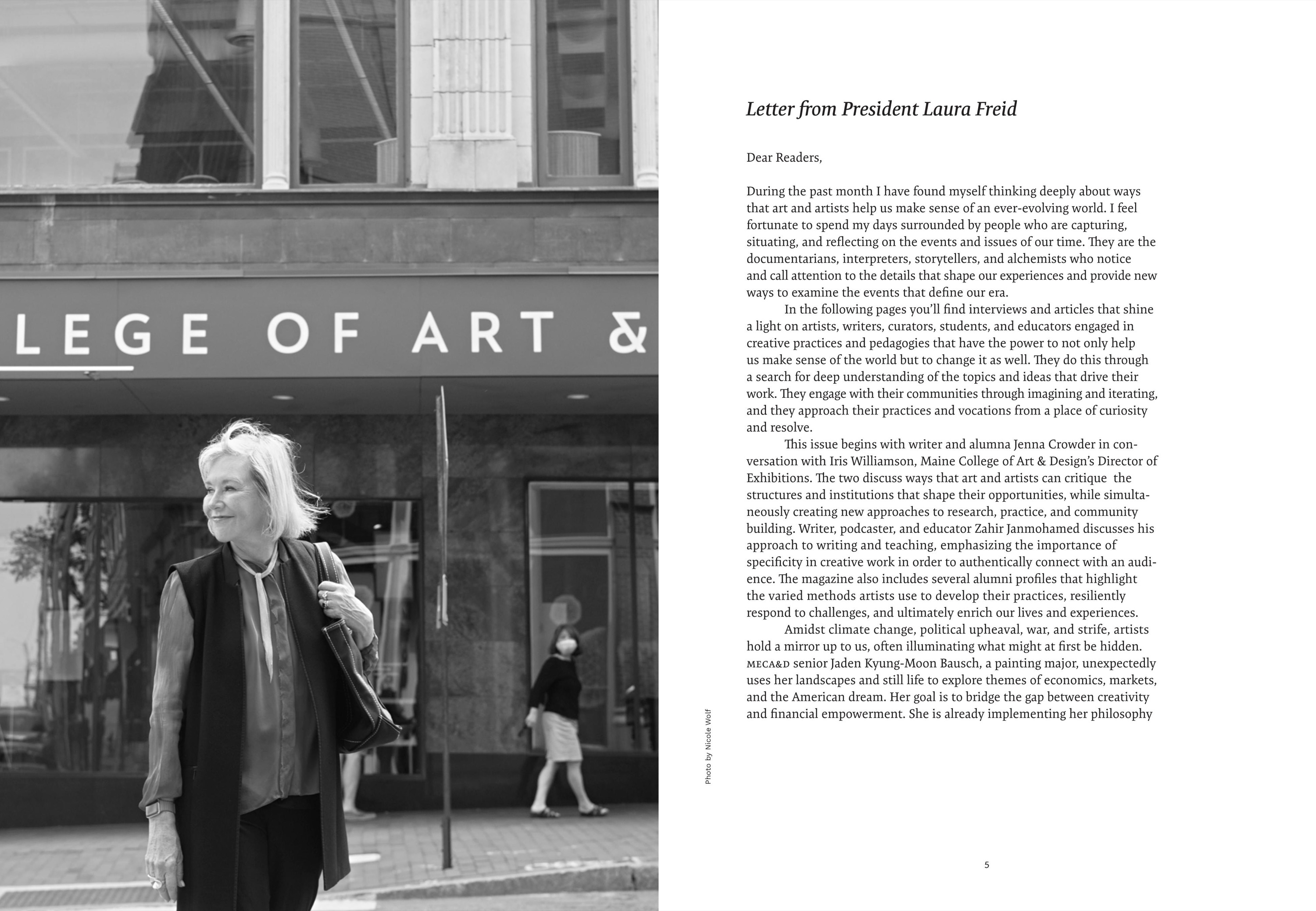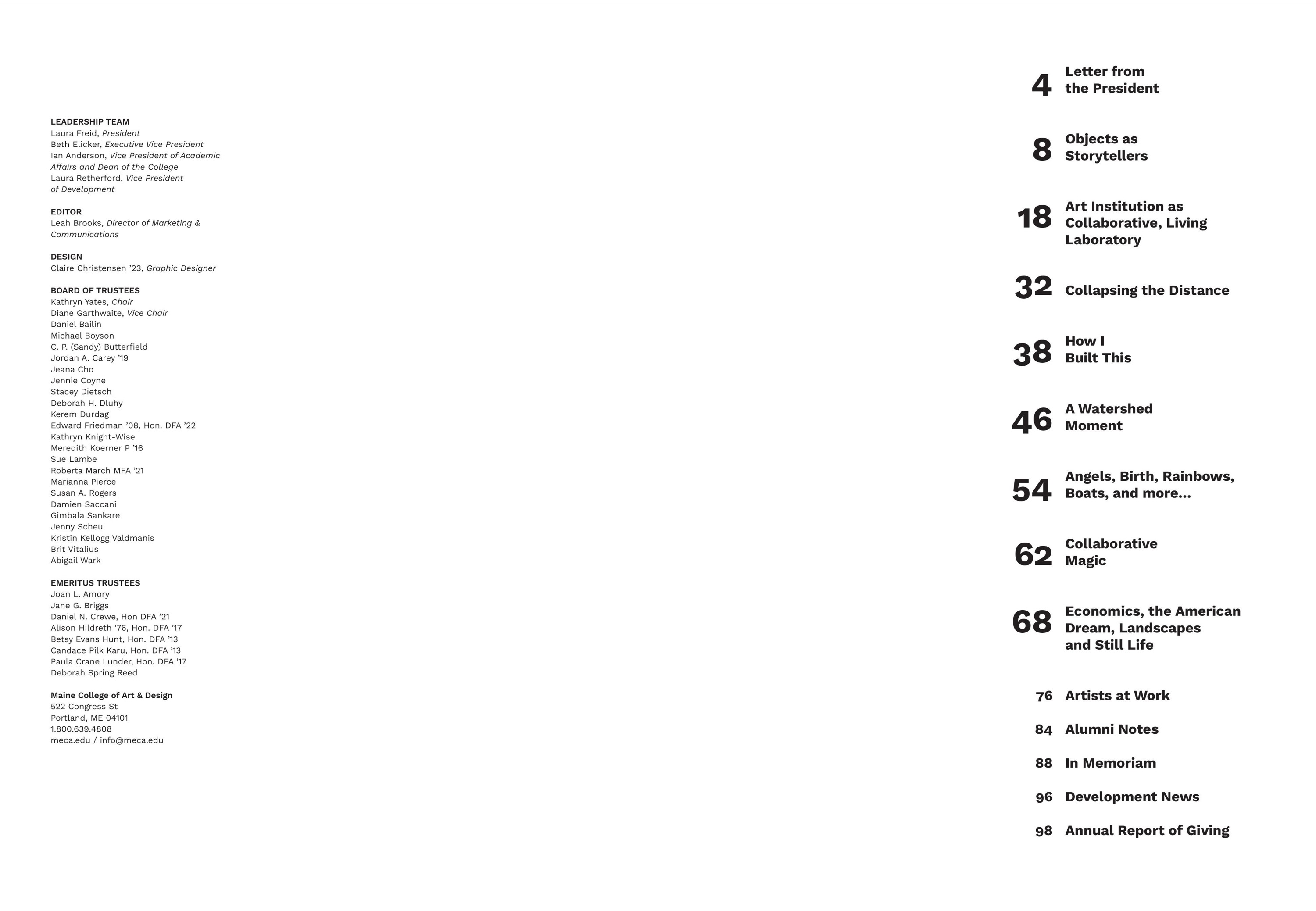 Maine College of Art & Design's (MECA&D) third edition of & Magazine showcases the diverse network of artists, designers, and storytellers who are the fabric of the MECA&D community. & Magazine is an opportunity to connect more deeply with our varied audiences by presenting an in-depth range of stories—from the business of pottery, to landscapes that explore themes of economics and the American dream, to spectral photography connected to the land. Collectively, & Magazine highlights the unbridled creativity bursting forth from the College. As you dig in, the stories about artists, writers, curators, students, and educators give us hope that art and artists have the power to change how people think and inspire change.