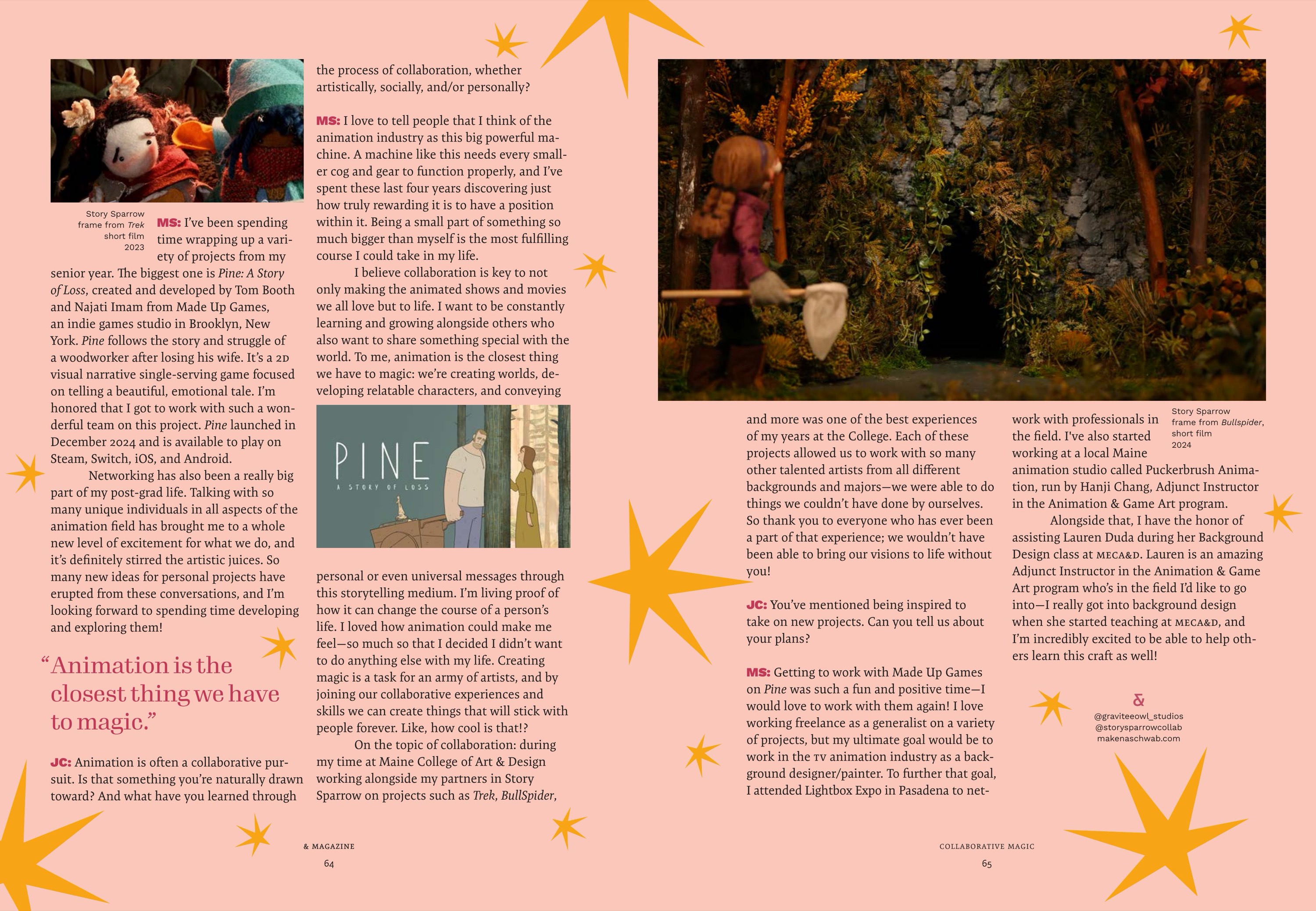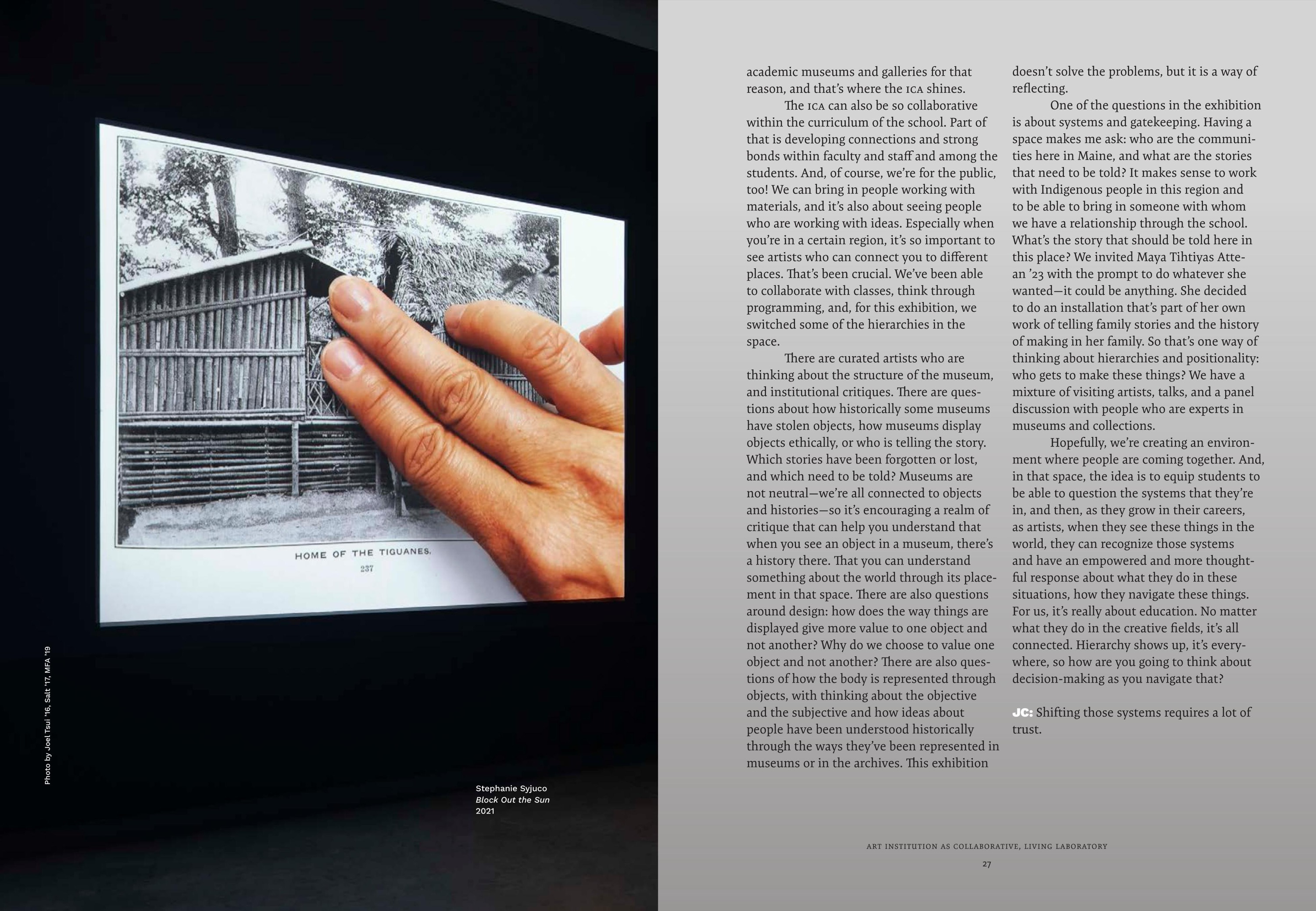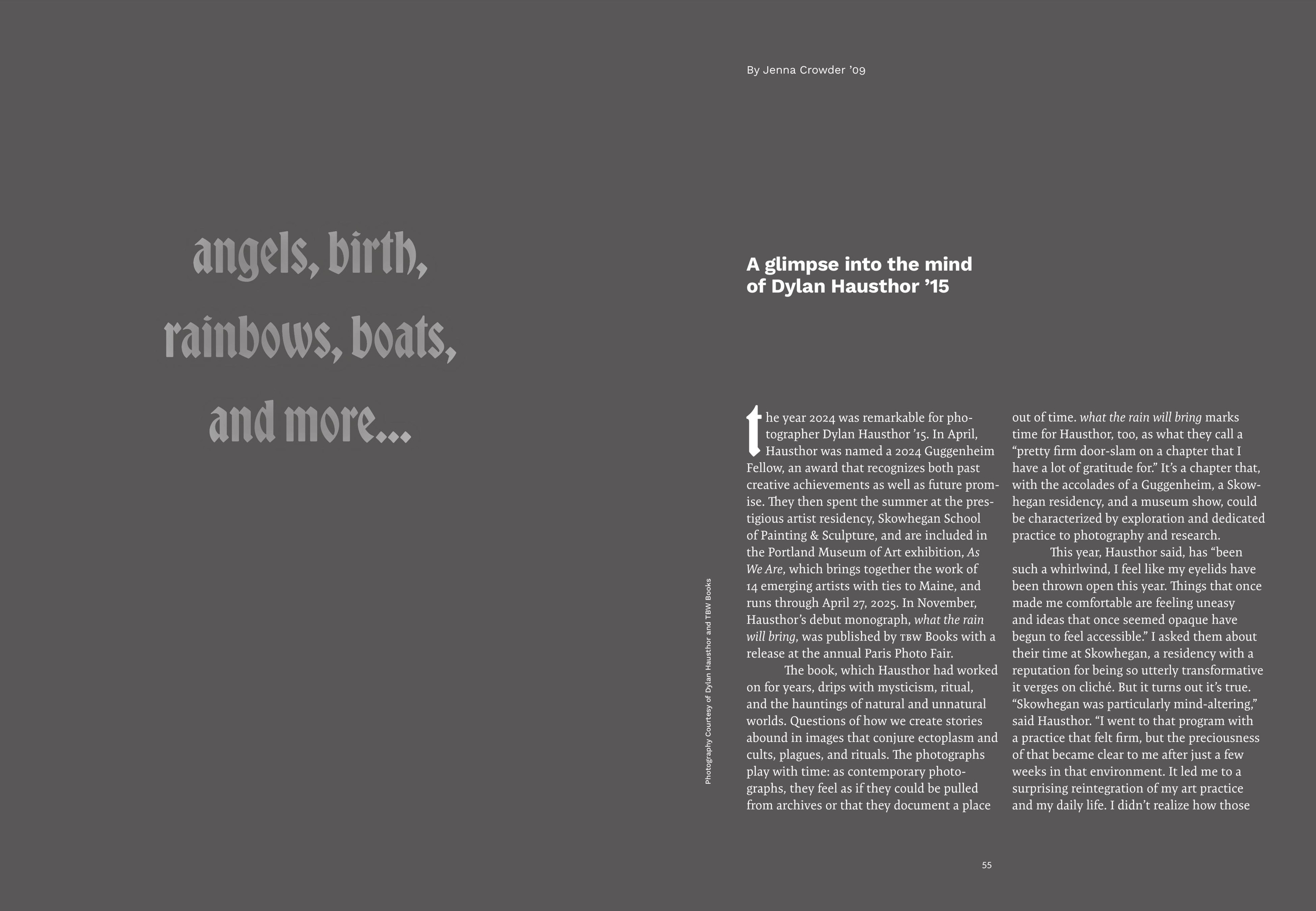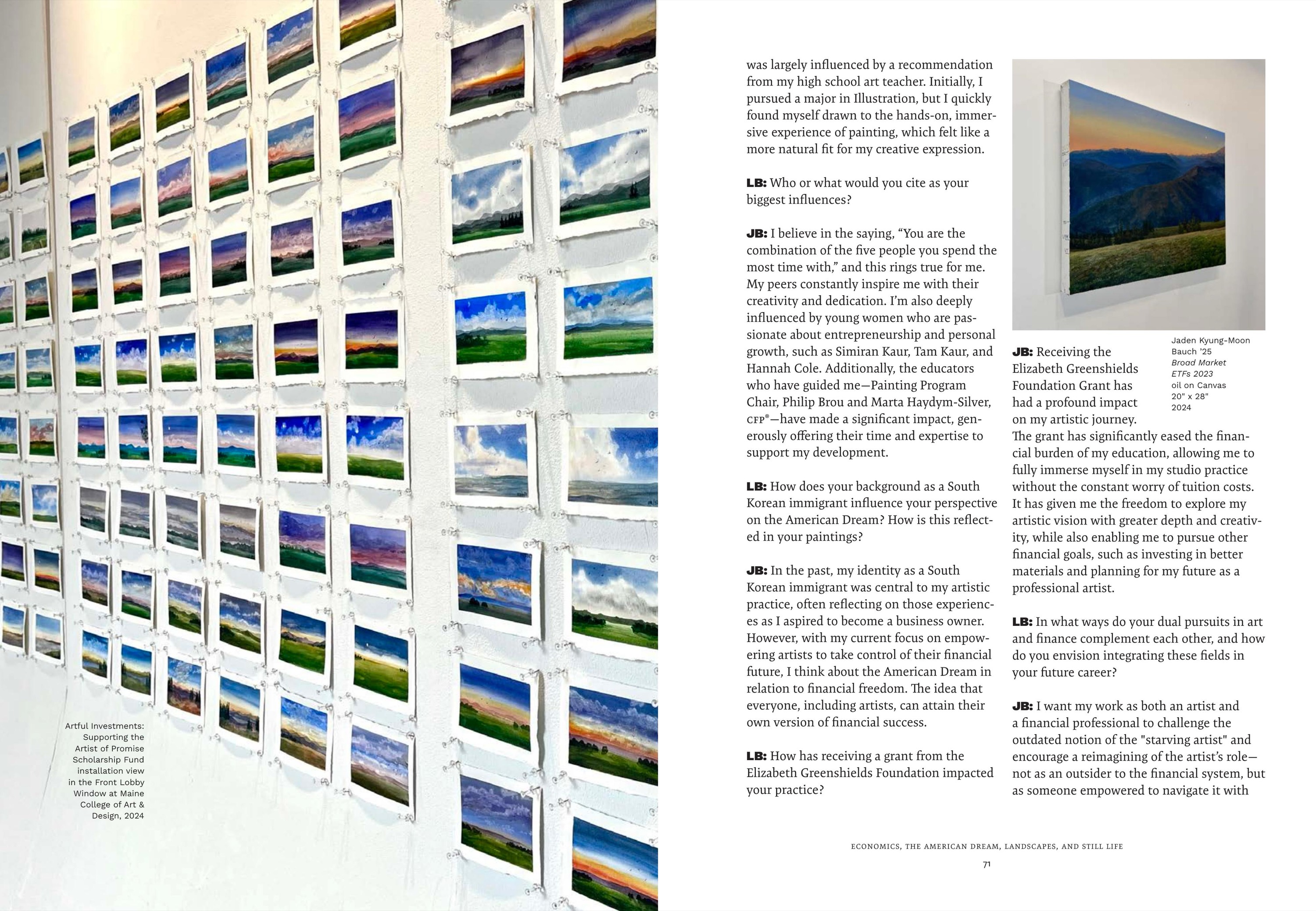 Maine College of Art & Design's (MECA&D) third edition of & Magazine showcases the diverse network of artists, designers, and storytellers who are the fabric of the MECA&D community. & Magazine is an opportunity to connect more deeply with our varied audiences by presenting an in-depth range of stories—from the business of pottery, to landscapes that explore themes of economics and the American dream, to spectral photography connected to the land. Collectively, & Magazine highlights the unbridled creativity bursting forth from the College. As you dig in, the stories about artists, writers, curators, students, and educators give us hope that art and artists have the power to change how people think and inspire change.